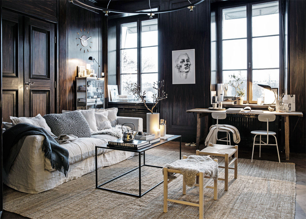 C'est Pella Hedeby du blog Stil inspiration qui a réalisé le stylisme de ce salon avec des produits des marques Rum 21, Royal Conception et Ikea. Cette réalisation est ensuite parue dans le magazine de décoration My Home. J'aime beaucoup le résultat de cet exercice avec cette ambiance