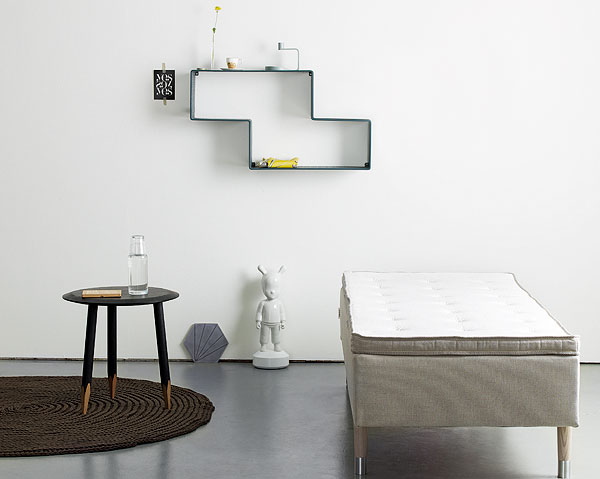 The basis is the bed with some accessories as a shelf, a small round table,